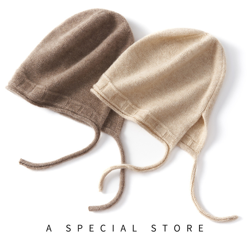 新秋冬100カシミヤニット帽子ひも付きデザイン保温耳保護ニット帽子卸売り男女同金