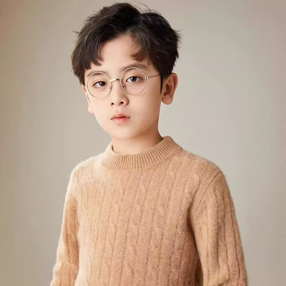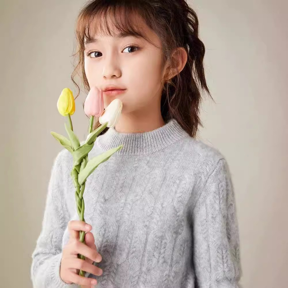 秋冬のウールのセーターの中で大きい子供の男女の半高襟の厚い青少年のセーターは花のカシミヤのニットの底のシャツを絞ります。