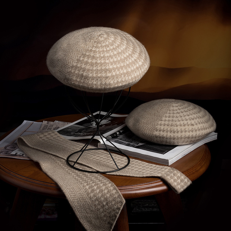 2024新型ベレー帽女カシミヤ秋冬ファッション千鳥格韓国版百合毛糸ニット帽子卸売り
