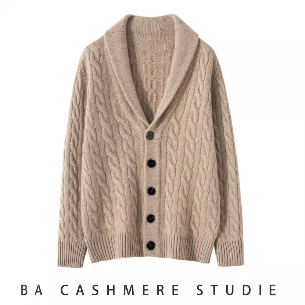 柔らかいモチモチの肌に優しい2024年のカシミヤのカーディガンの男性のコートの青果の緑の厚い花のカジュアルなセーターのニット