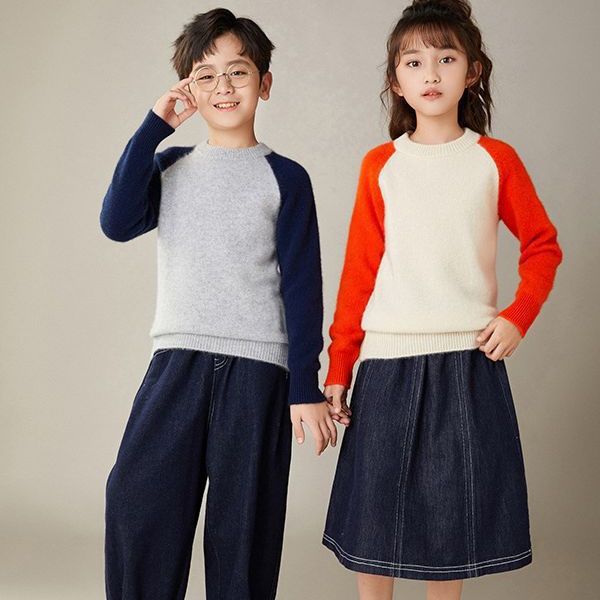 子供用のセーターの丸襟の女性子供服の秋冬の厚手の男の子のセーターの赤ちゃんの色合わせのカシミヤのニットは底を打ちます。