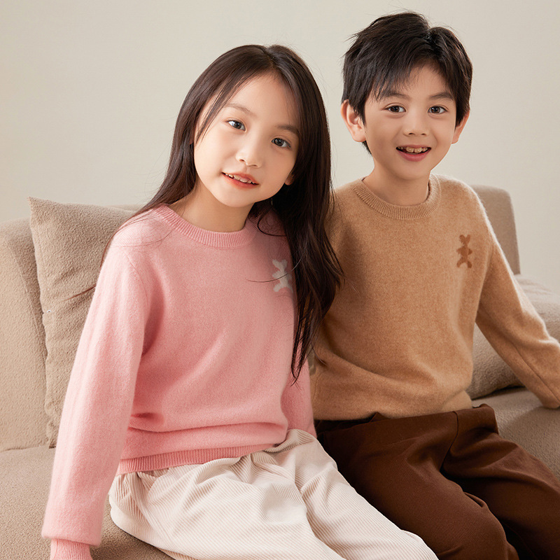 2024年秋冬セーター女の子ピンク刺繍さくらんぼセーター子供丸襟ニットカシミヤセーター