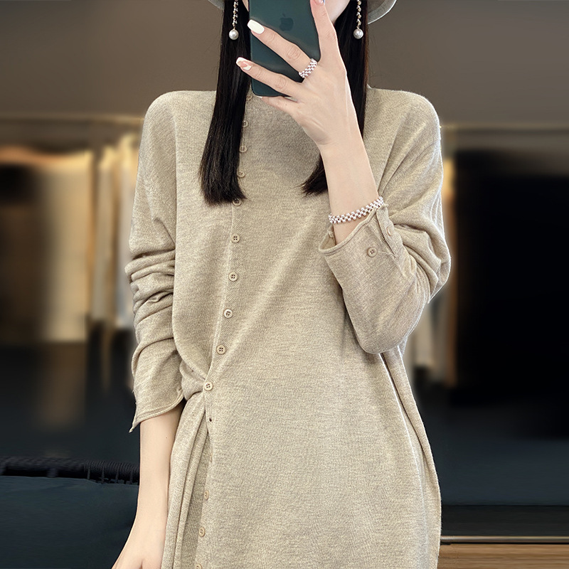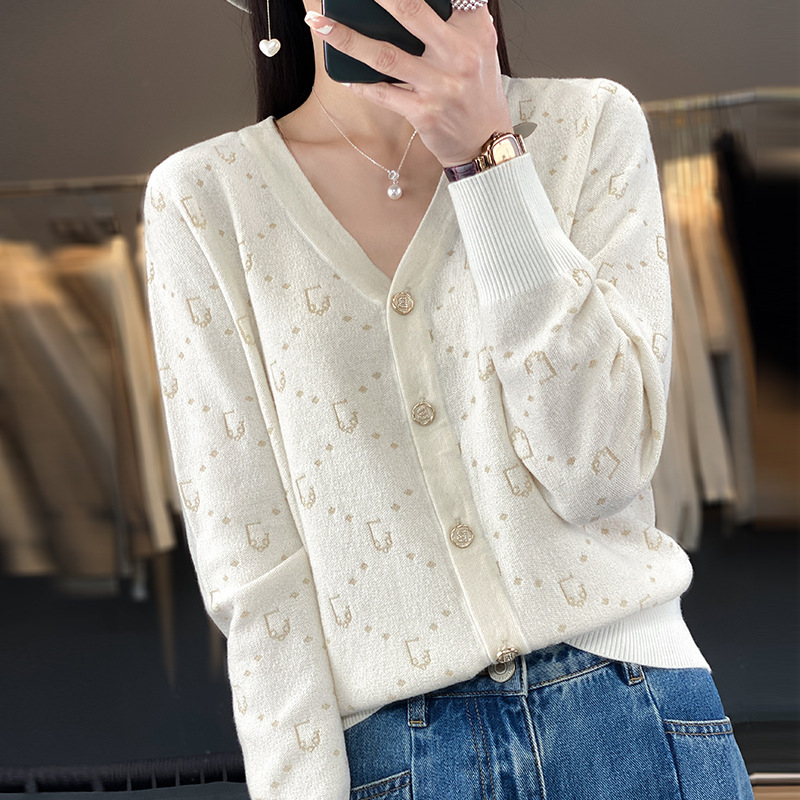 2024精紡ウールカーディガン女性のゆるい立襟ボタンの外着セーターの怠惰な風の薄いニットセーターのコート