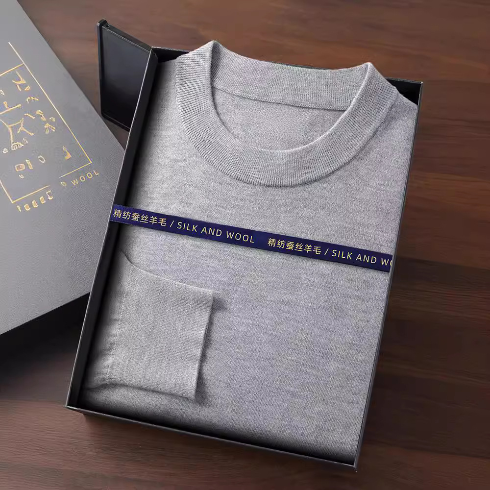 薄手のシルクウール春秋新作男性丸首精紡ビジネスカジュアルニット