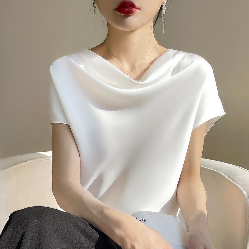 2025 春夏の新ファッションパイルカラー半袖 T シャツ女性のファッショナブルなサテン痩身気質多用途トップ