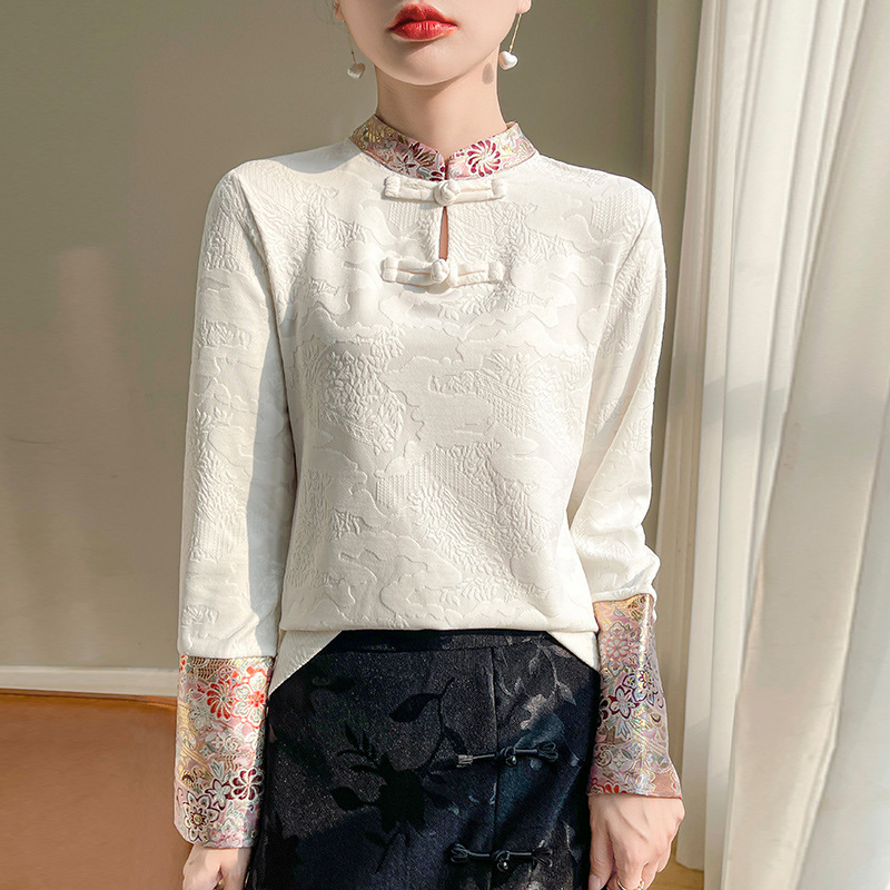 甘い新中国式2024春夏雲錦織国風立襟盤ボタン底シャツ女性の色合わせ長袖の中にt