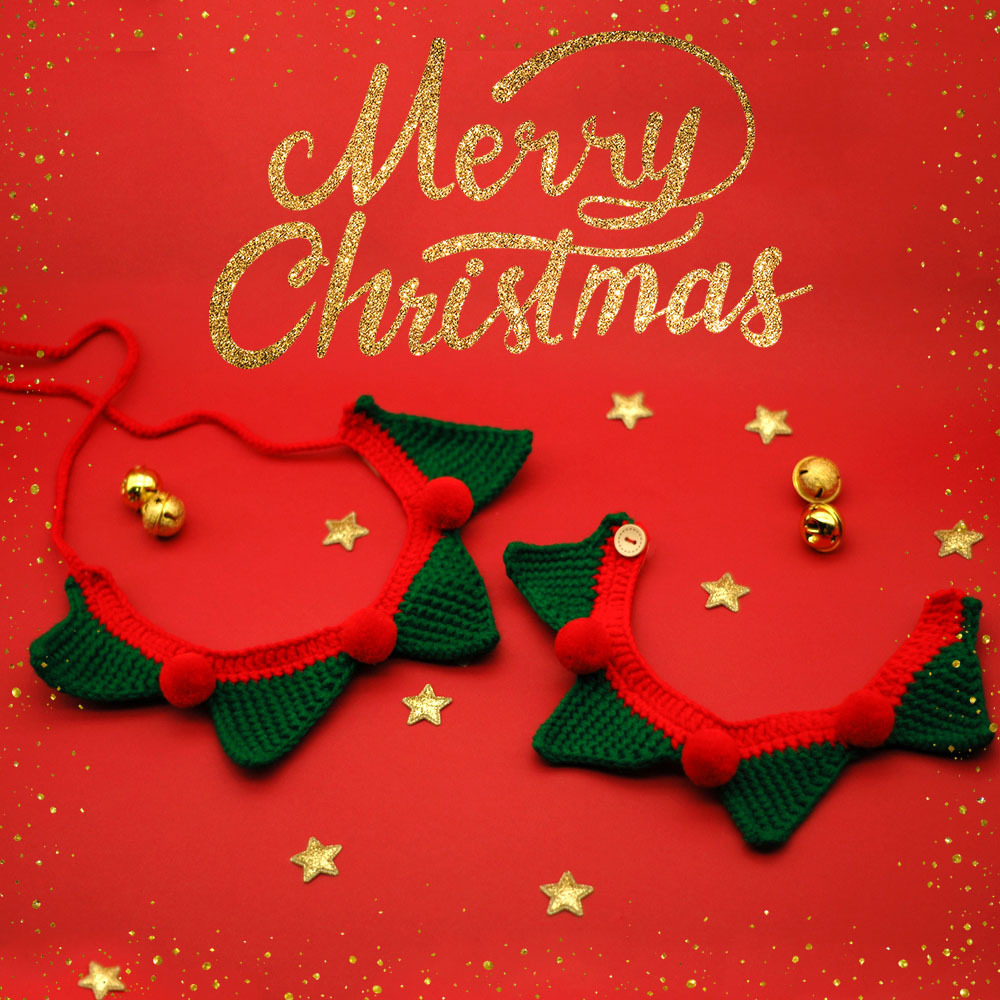 国境を越えたクリスマス猫犬毛糸鉤織首輪クリスマス首を囲むクリスマス赤い緑の首輪