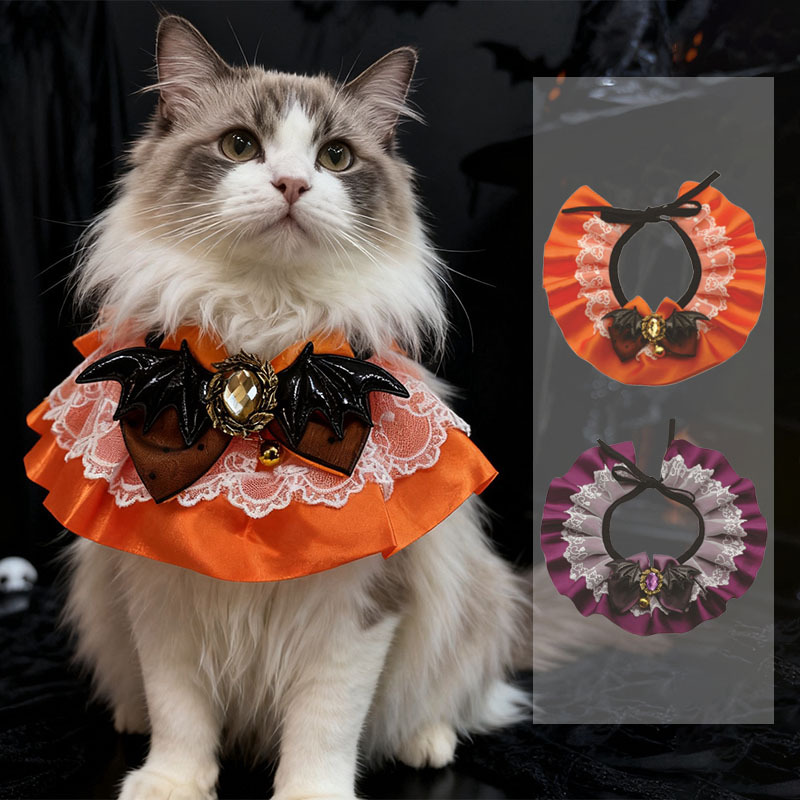 国境を越えた新作ハロウィンレース首輪、猫と犬用のよだれかけ、調節可能な写真撮影用アクセサリー、フリル付き