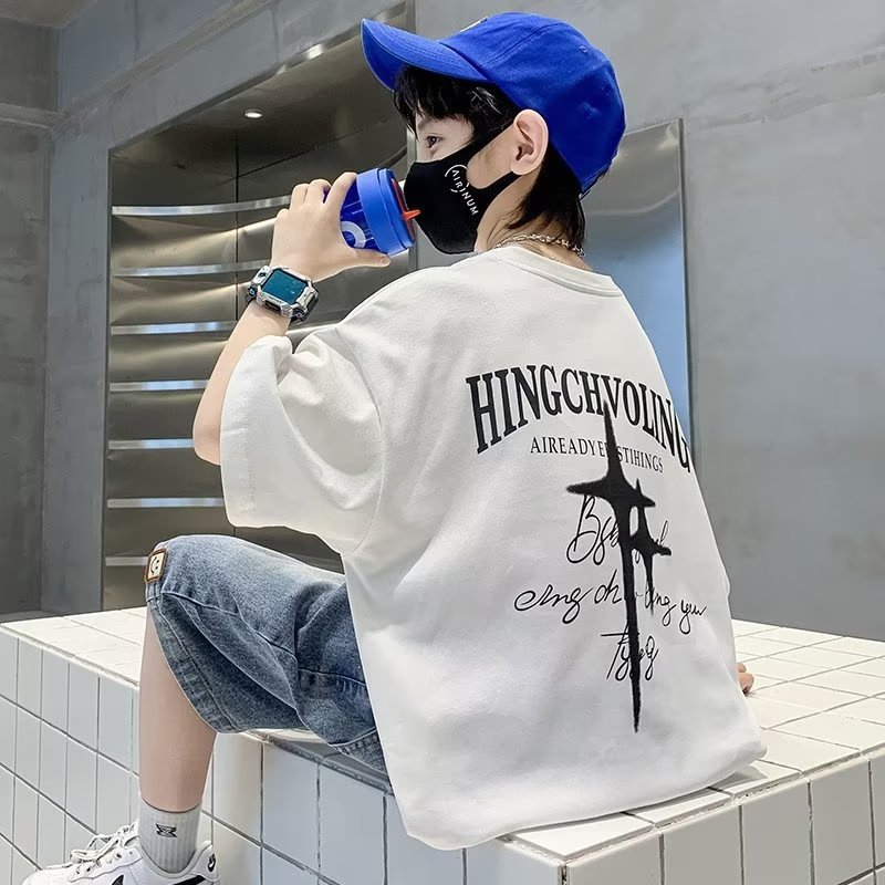 男の子tシャツ半袖夏純綿2024新型子供服夏服ネット赤揚げ街半袖上着大男の子