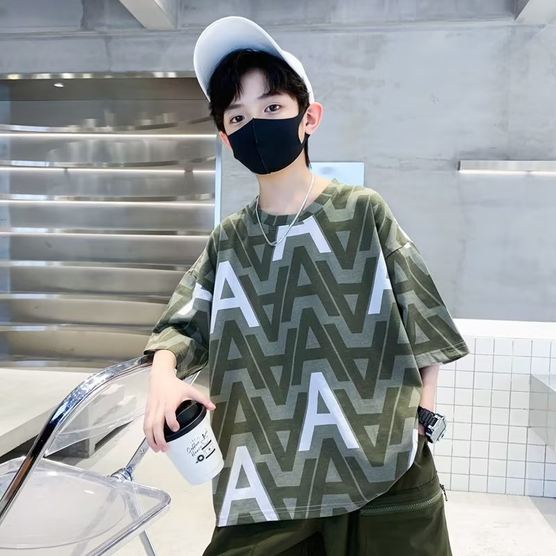 男の子用夏服半袖Tシャツ2025新作子供用夏服おしゃれトップス中高生向け夏服Tシャツトレンド