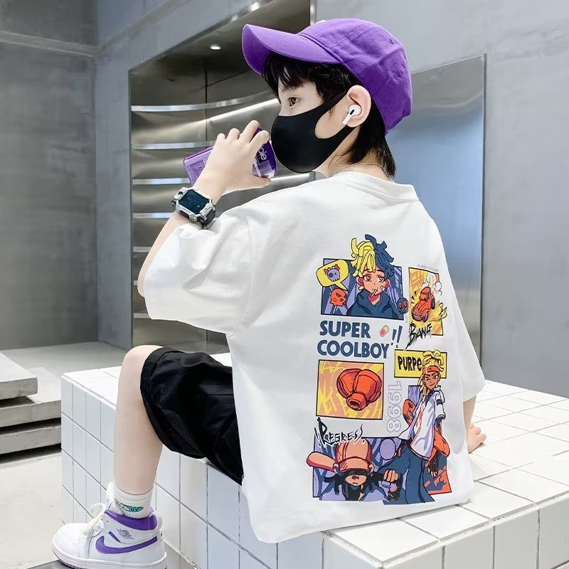 子供服男の子半袖tシャツ夏服2024年新作中大童純綿プリント男の子半袖上着ブーム