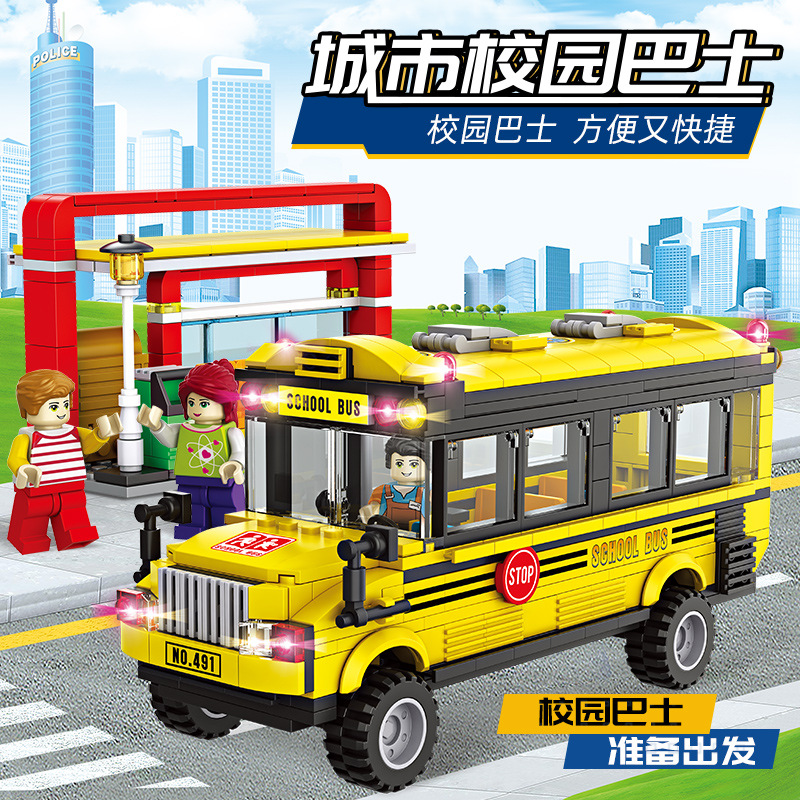 品興491都市シリーズ学校バススクールバス互換レゴパズル積み木子供用おもちゃプレゼント
