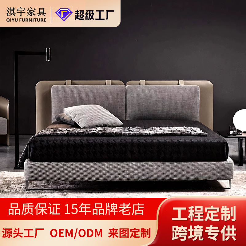 1688イタリアのミニマリストファブリックソフトパッケージレザーベッドモダンライト高級デザイナー家具ソースファクトリー 1.8m ダブルベッド