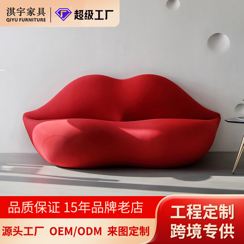 1688モダンライト高級3人用特殊形状ソファホテル衣料品店美容室ファブリック赤いリップソファクリエイティブデザイナーモデル