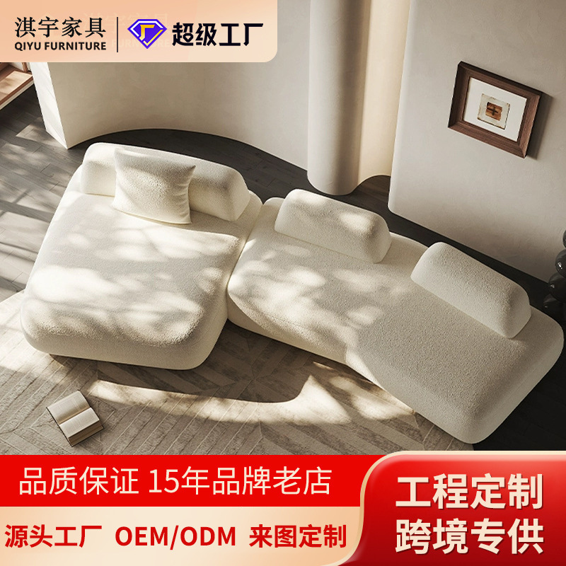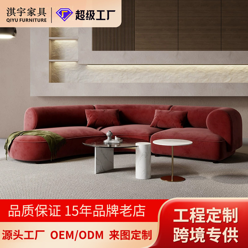 1688淇宇轻奢转角弧形沙发客厅现代简约绒布懒人沙发定制家具工厂直销