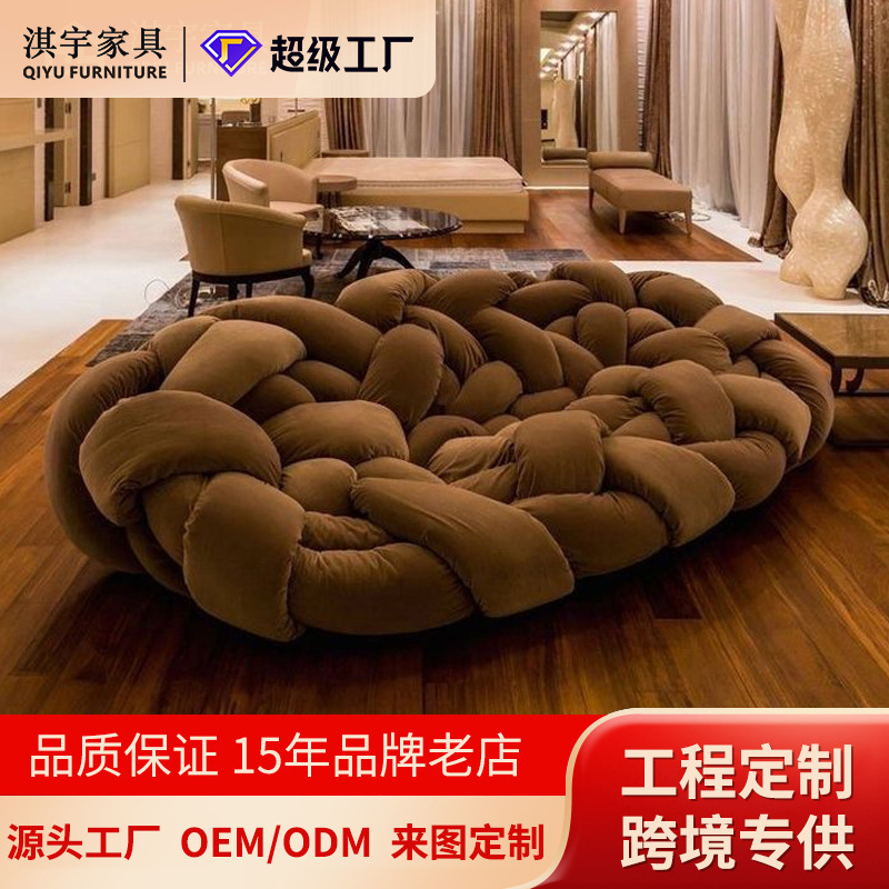 1688イタリア風ミニマリストの大きなクマ型ソファ、リビングルーム、ホテル、別荘用布張りソファ、軽奢で高級感のある曲線ソファ