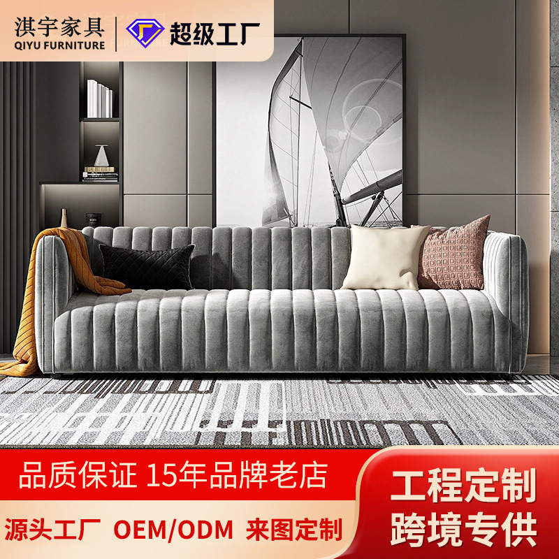 1688イタリアのライト高級 3 人掛けストレートソファ小さなリビングルームデザイナー家具ベルベットシンプルなファブリックソファ