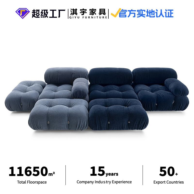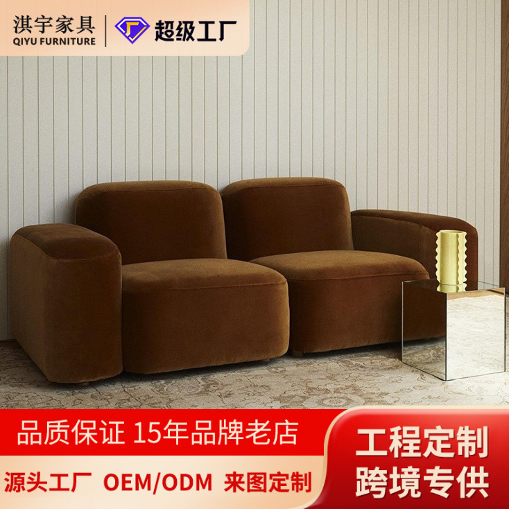 Qiyu Wabi-Sabi スタイル パンモジュール ソファ リビングルーム B&B モデルルーム デザイナー家具 ラムベルベット生地ソファ