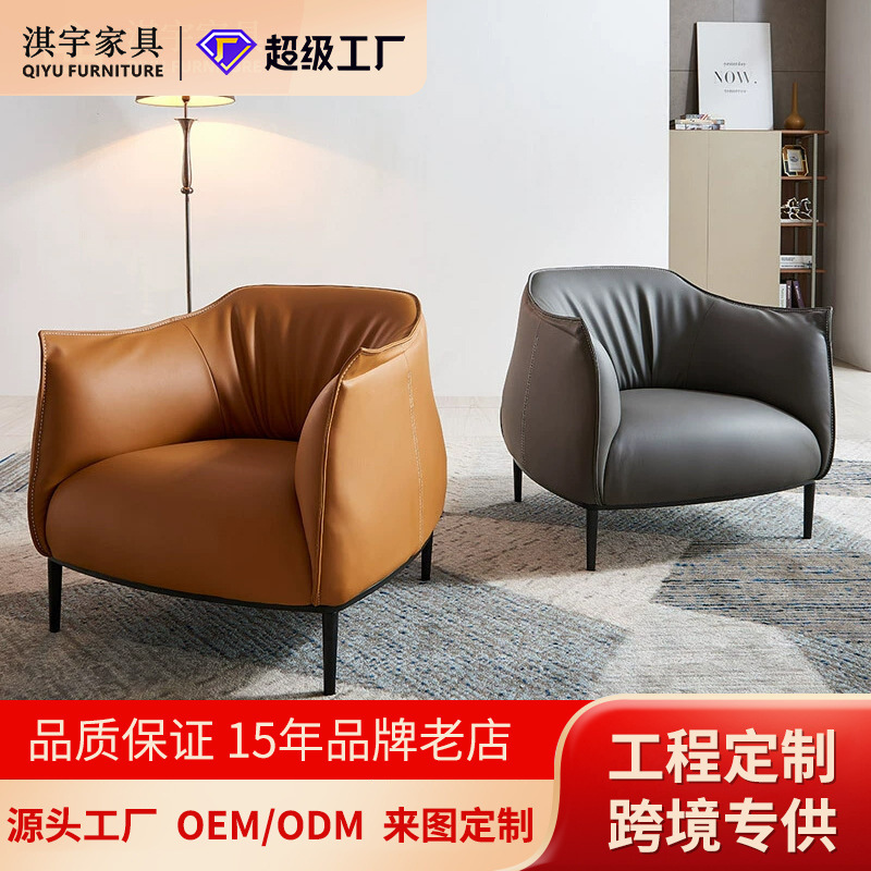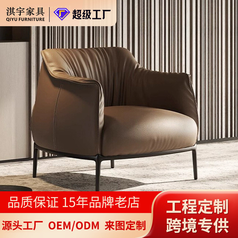 Qiyu イタリアのライト高級怠惰なソファチェアホテルクラブ交渉デザイナー家具レザーシングルレジャーチェア