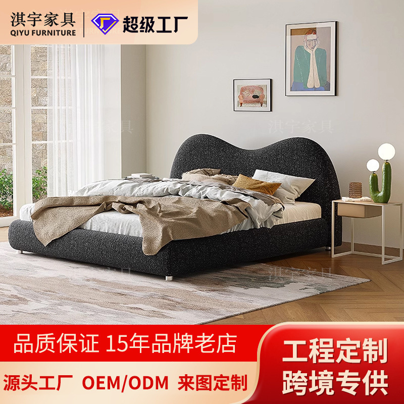 Qiyu イタリアのミニマリストファブリックベッドモダンなミニマリストホームデザイナー家具ベルベットシェニール寝室ダブルベッド
