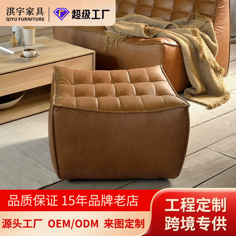 北欧わびさびスタイルモジュールソファ組み合わせリビングルームワッフルファブリックソファフットレストレトロスタイルデザイナー家具