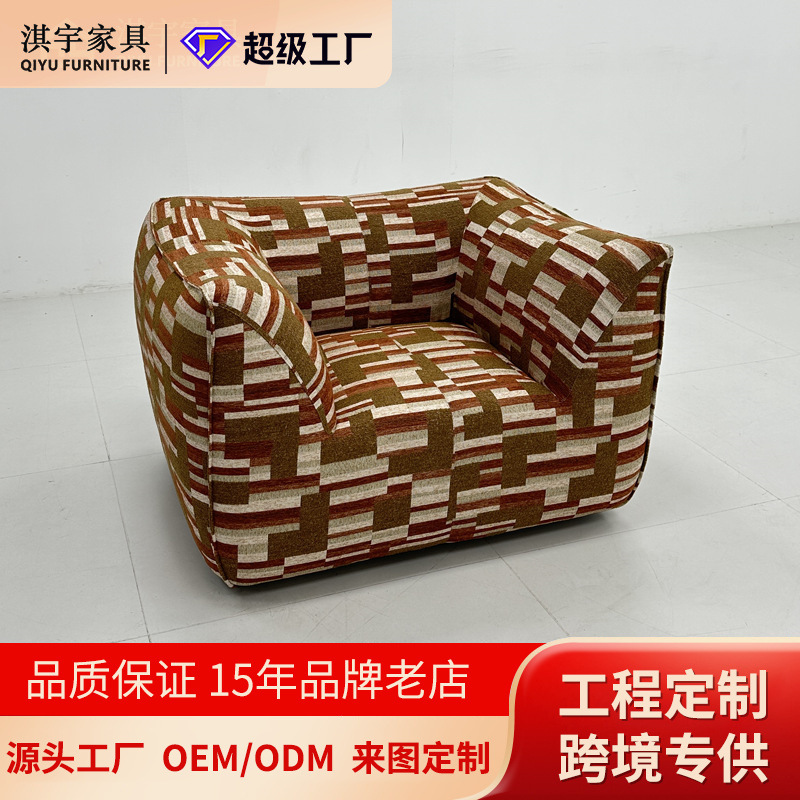 Qiyu 中世スタイルの特殊な形のソファチェア北欧リビングルーム寝室デザイナー家具バウハウスファブリックソファチェア