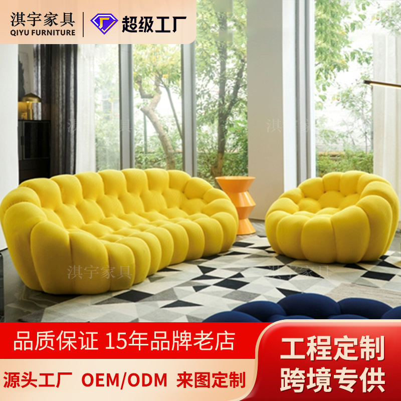 奇宇モダンシンプル曲線ソファ ロッキーバーグ ネット人気布張りソファ リビングルーム ホテル 多人数用/一人用ソファチェア