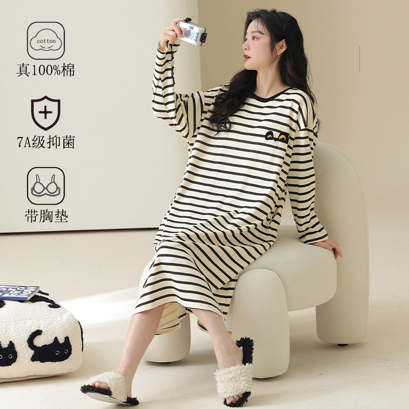 A類の純綿の寝スカートの女性のタイプは胸のパッドの春と秋の長袖の大きいサイズを持っています。