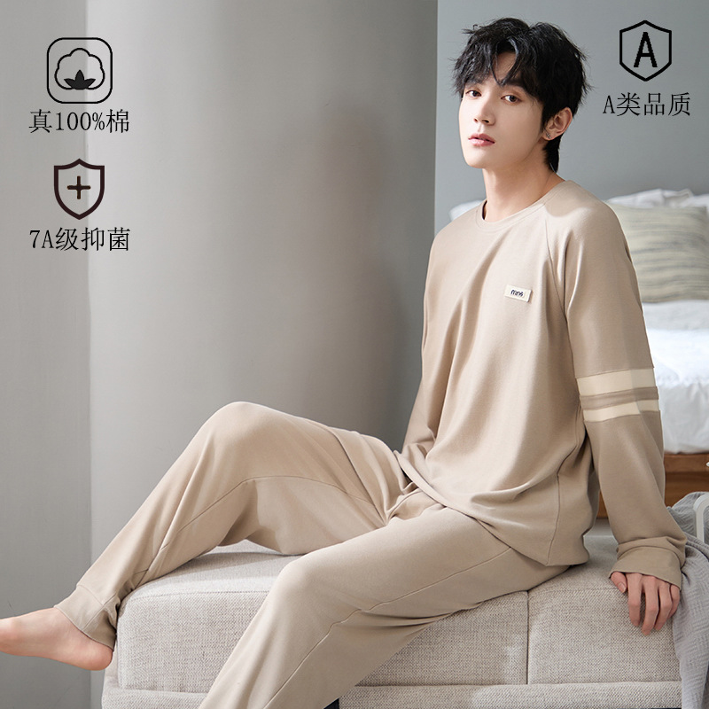 クラスA抗菌男性純綿パジャマ男性春秋長袖大サイズカジュアル男性純綿ルームウェア
