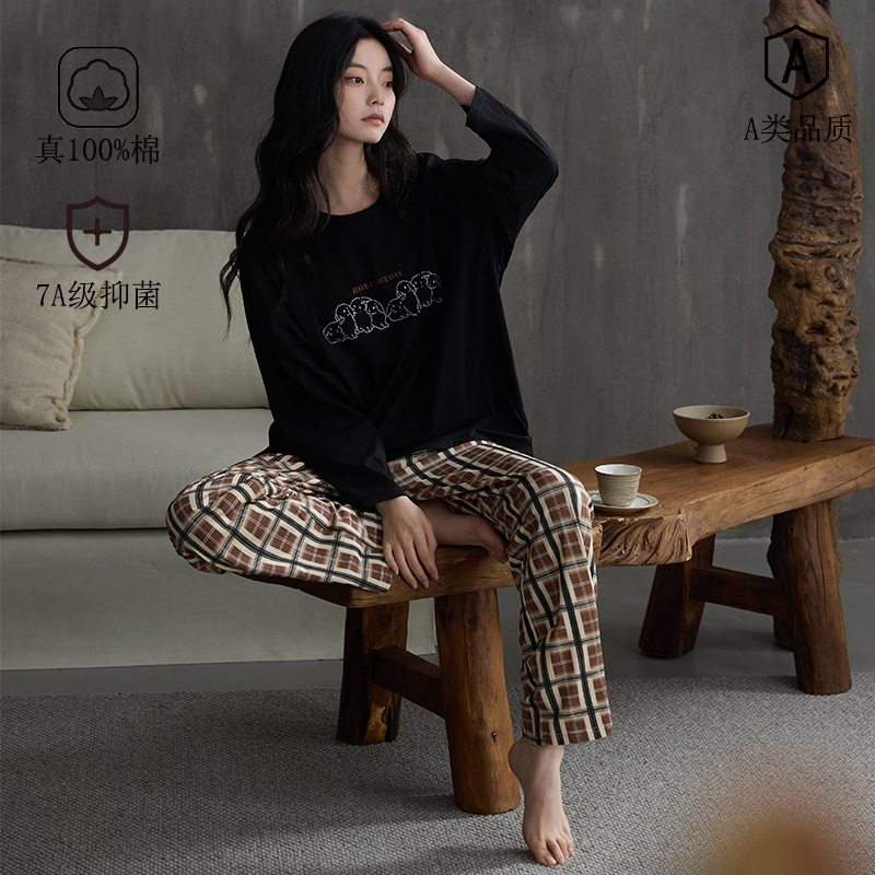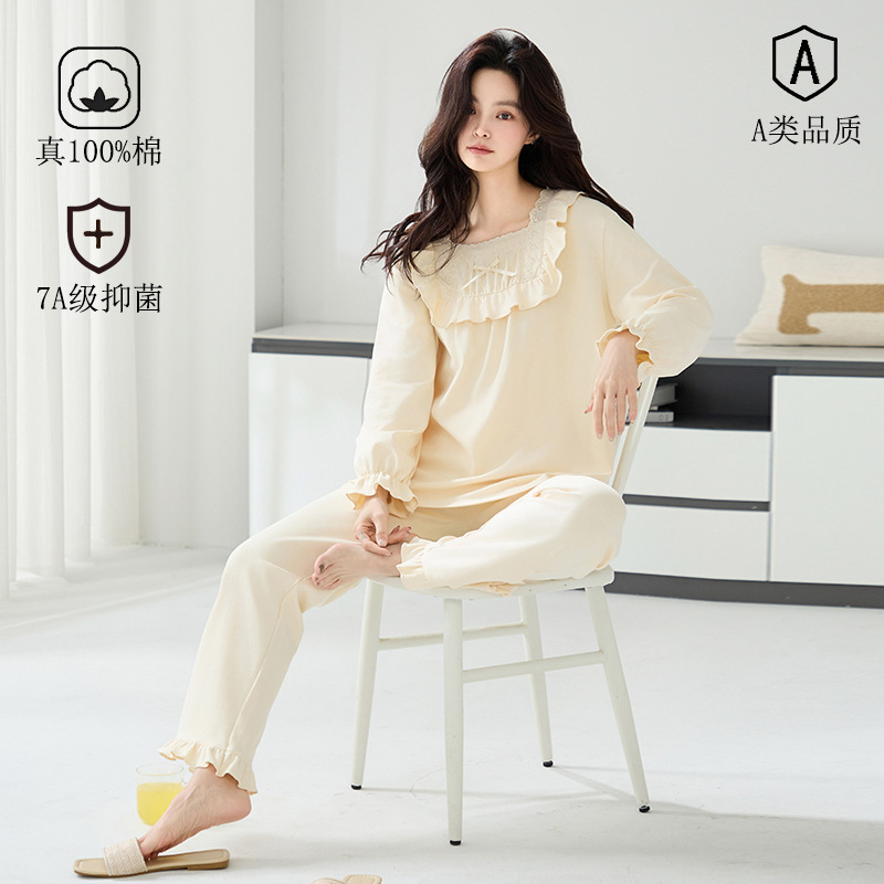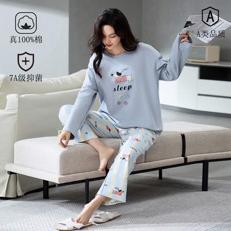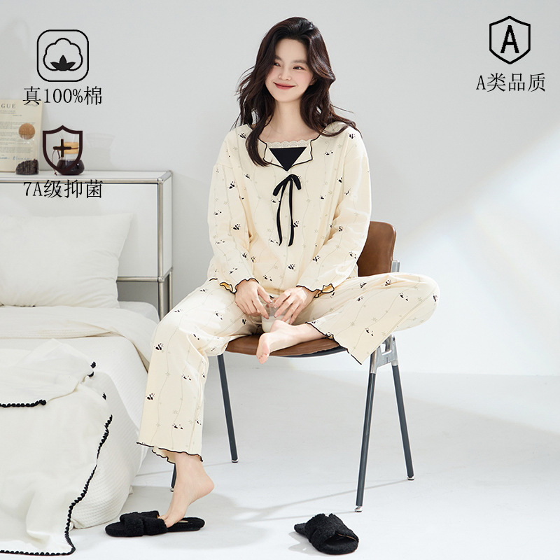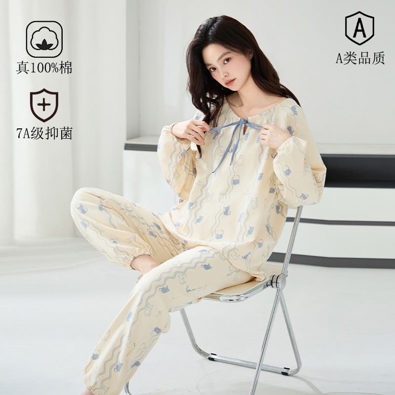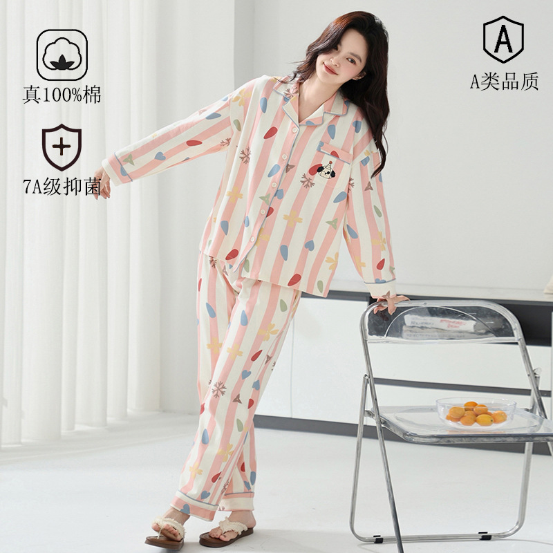 クラスA抗菌パジャマ女子春秋綿綿長袖カーディガン大サイズ高級感女子綿家庭服セット