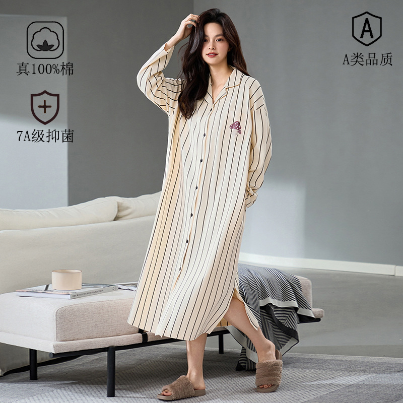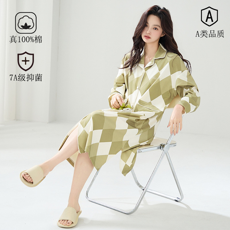 A類抗菌パジャマ女性春秋長袖カーディガン大サイズワンピースロング高級感綿パジャマ女性