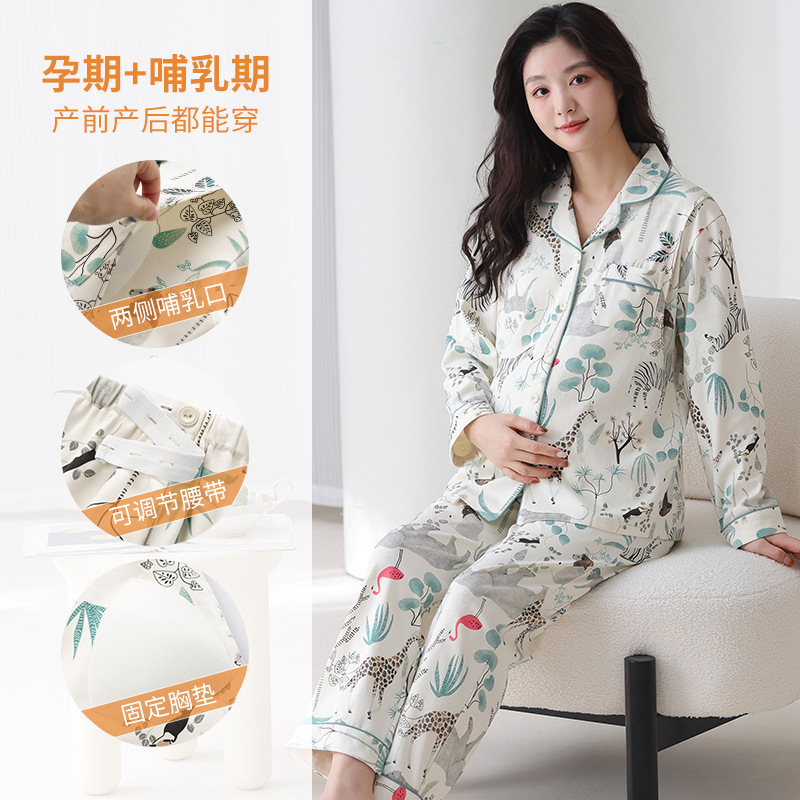 A類胸パッド付き純綿月子服パジャマ春秋長袖カーディガン妊婦出産前産後授乳ホームウェア