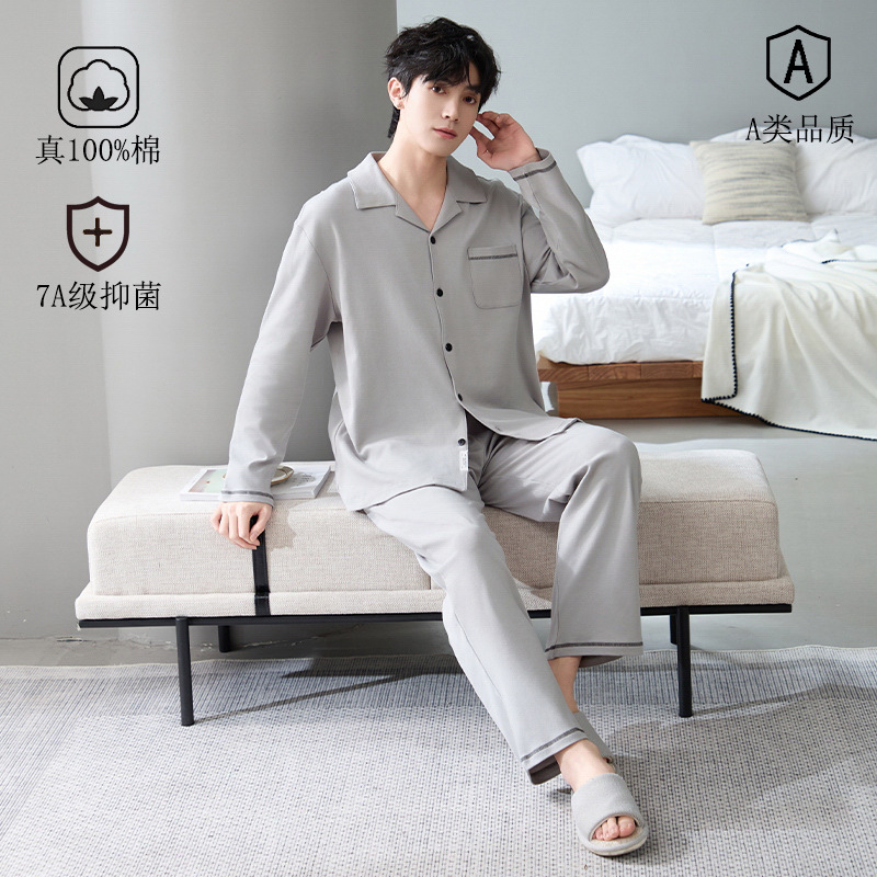 クラスA抗菌純綿パジャマ男性タイプ春秋長袖カーディガンプラスサイズ男性綿高級感ホームウェア