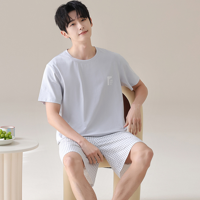 2025 新しいパジャマメンズ夏の純粋な綿半袖カジュアルウェアラブルハイエンド綿ホーム服メンズスーツ