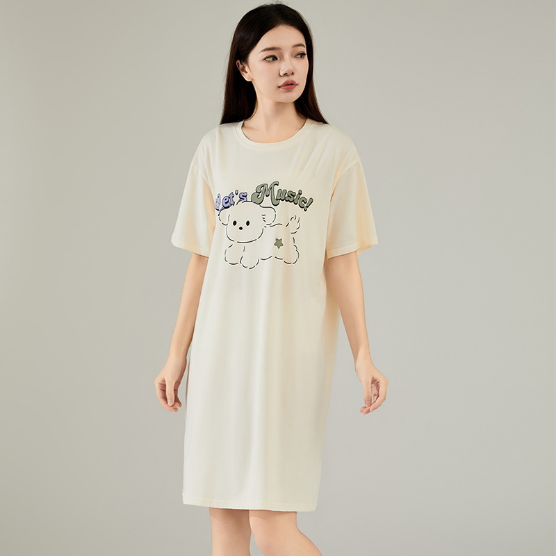 女性の純綿ナイトガウン、女性の夏の半袖ドレス、女性のミディアム丈の女の子の漫画のクールな綿のパジャマ