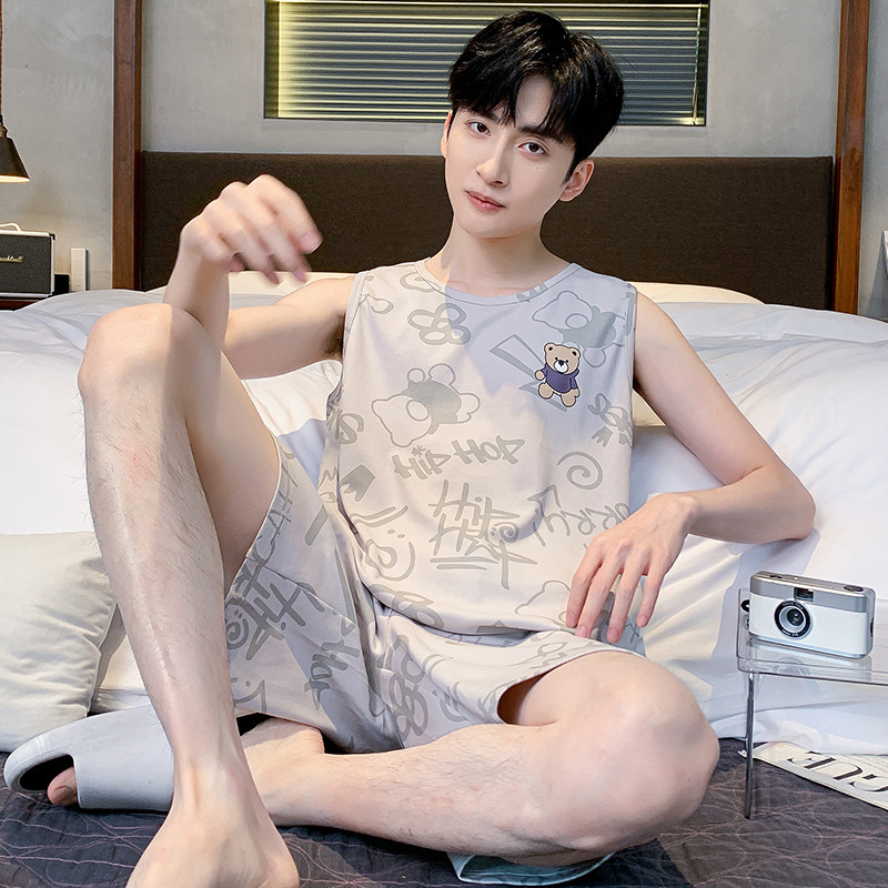 ティーンエイジャーのパジャマメンズ夏の綿のベストショーツカジュアルウェアラブル漫画綿ホーム服メンズスーツ