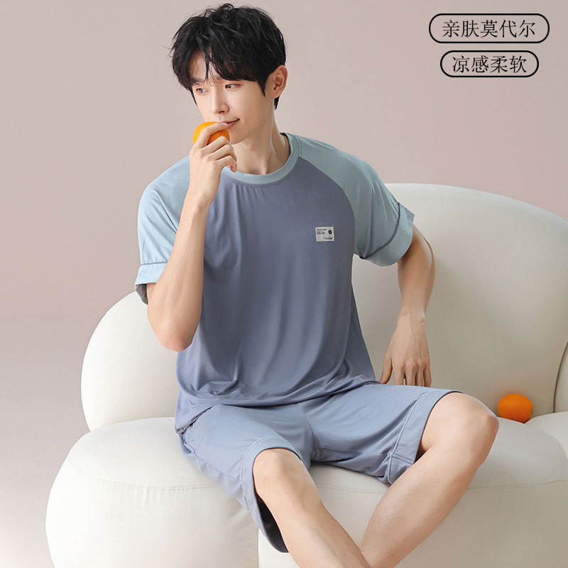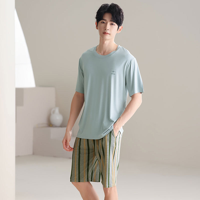 パジャマメンズモーダルメンズ夏半袖2025新しいティーンエイジャープラスサイズルーズホームウェアセット