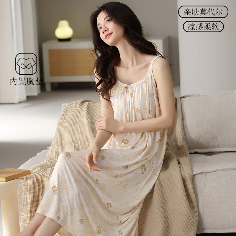 女性用サスペンダーナイトガウン、胸パッド付き夏用モーダルパジャマ、女性用アイスシルククールでセクシーな女の子用ホームウェア