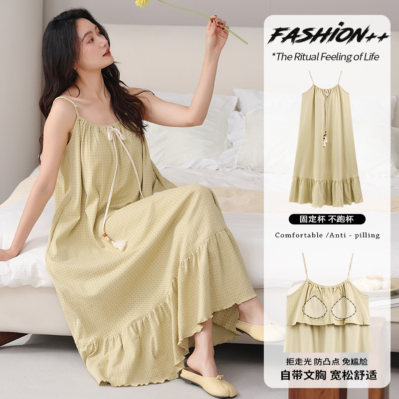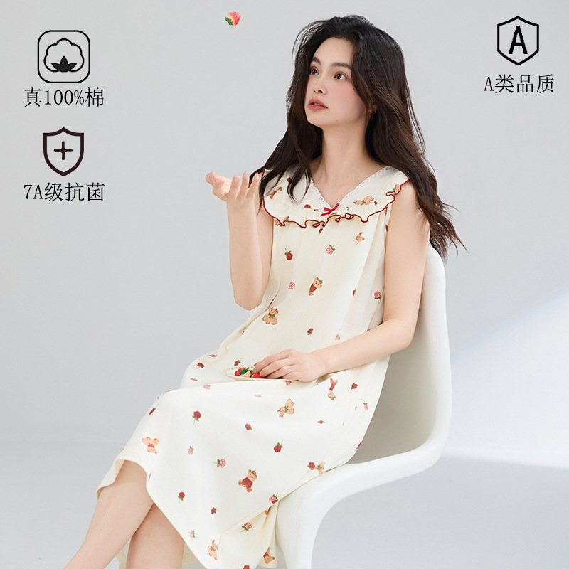 A類抗菌純綿ベストパジャマ女性夏ワンピース女性ミディアムロング高級感プラスサイズ純綿パジャマ