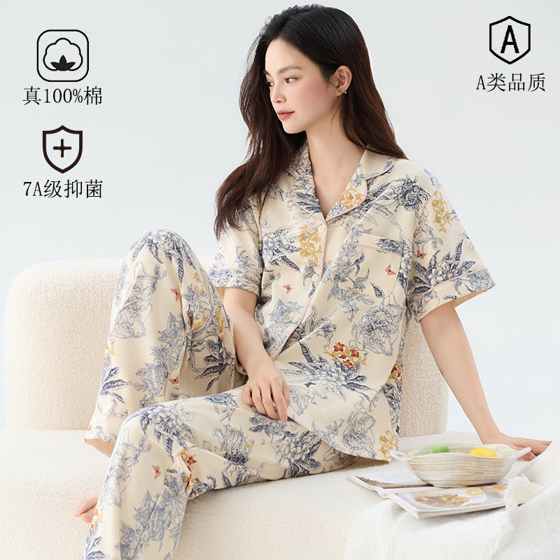 クラスA抗菌綿パジャマ女性用夏半袖ズボンカーディガンハイエンド大きいサイズ綿ホーム服女性用