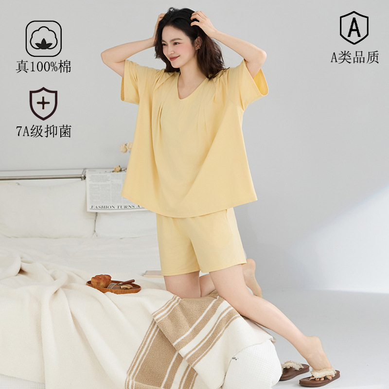 クラスA抗菌パジャマ女性用夏純綿半袖プルオーバー大きいサイズ綿ホーム服女性用ウェアラブルスーツ