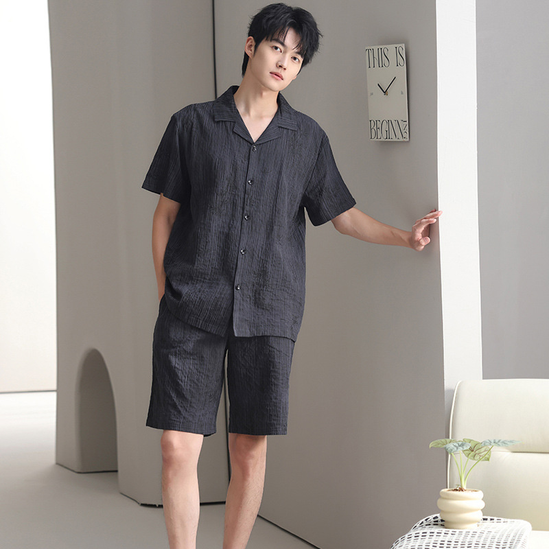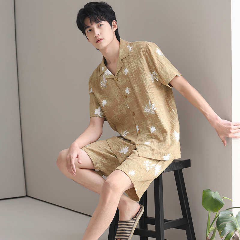 100% コットンメンズパジャマ男夏コットンガーゼコットン半袖カーディガン高級感涼感ホームウェアアウター可