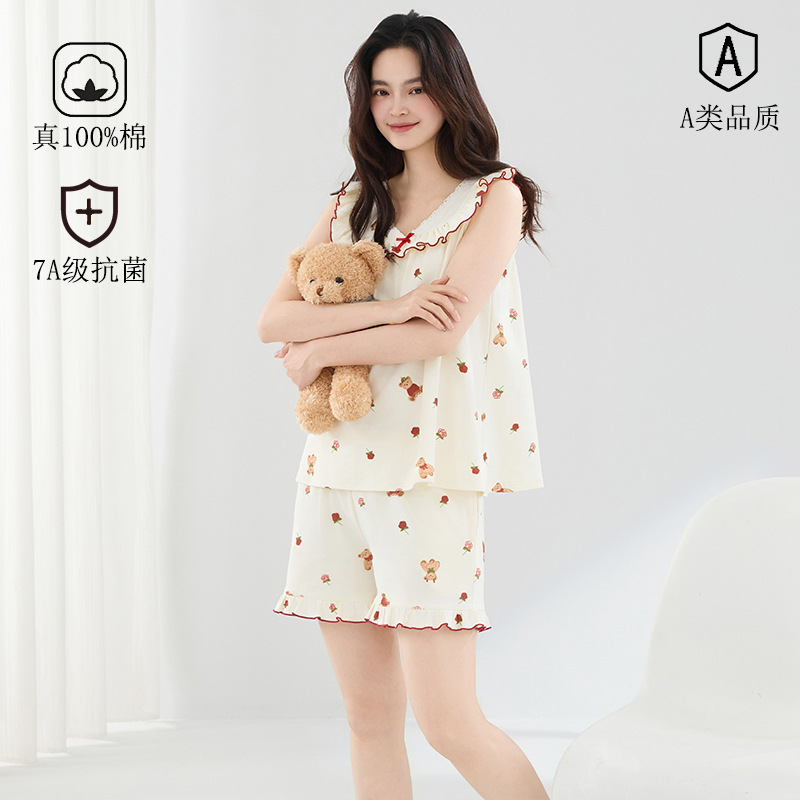 A類抗菌100% 純綿パジャマ女性夏ベスト袖なしプリンセス風プラスサイズ純綿ルームウェア女性