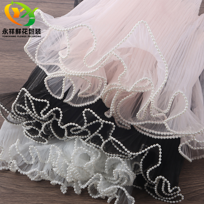 メーカー直販現物郵便生花包装材料ネット糸真珠金純色しわ波花糸ネット卸売り