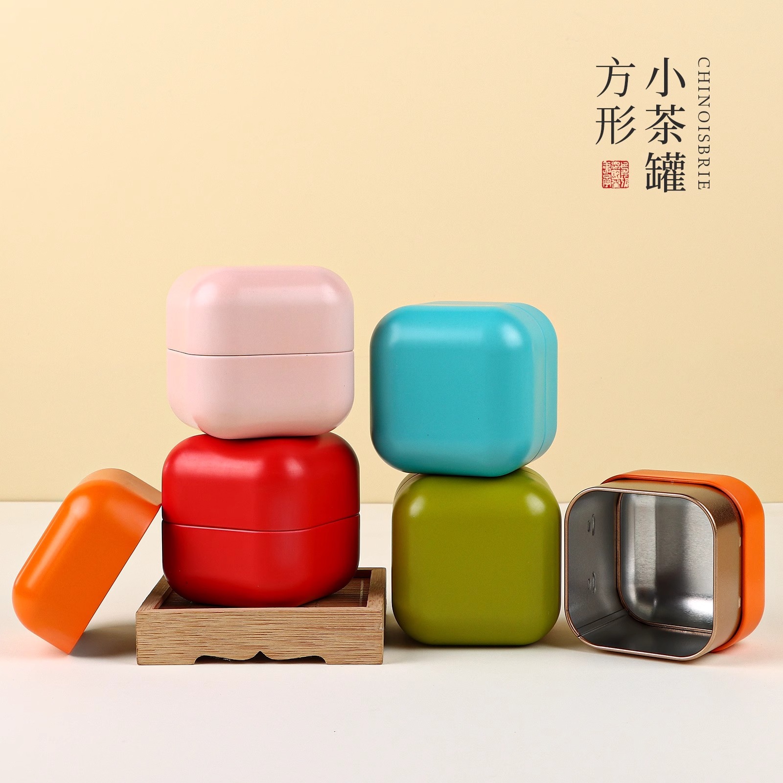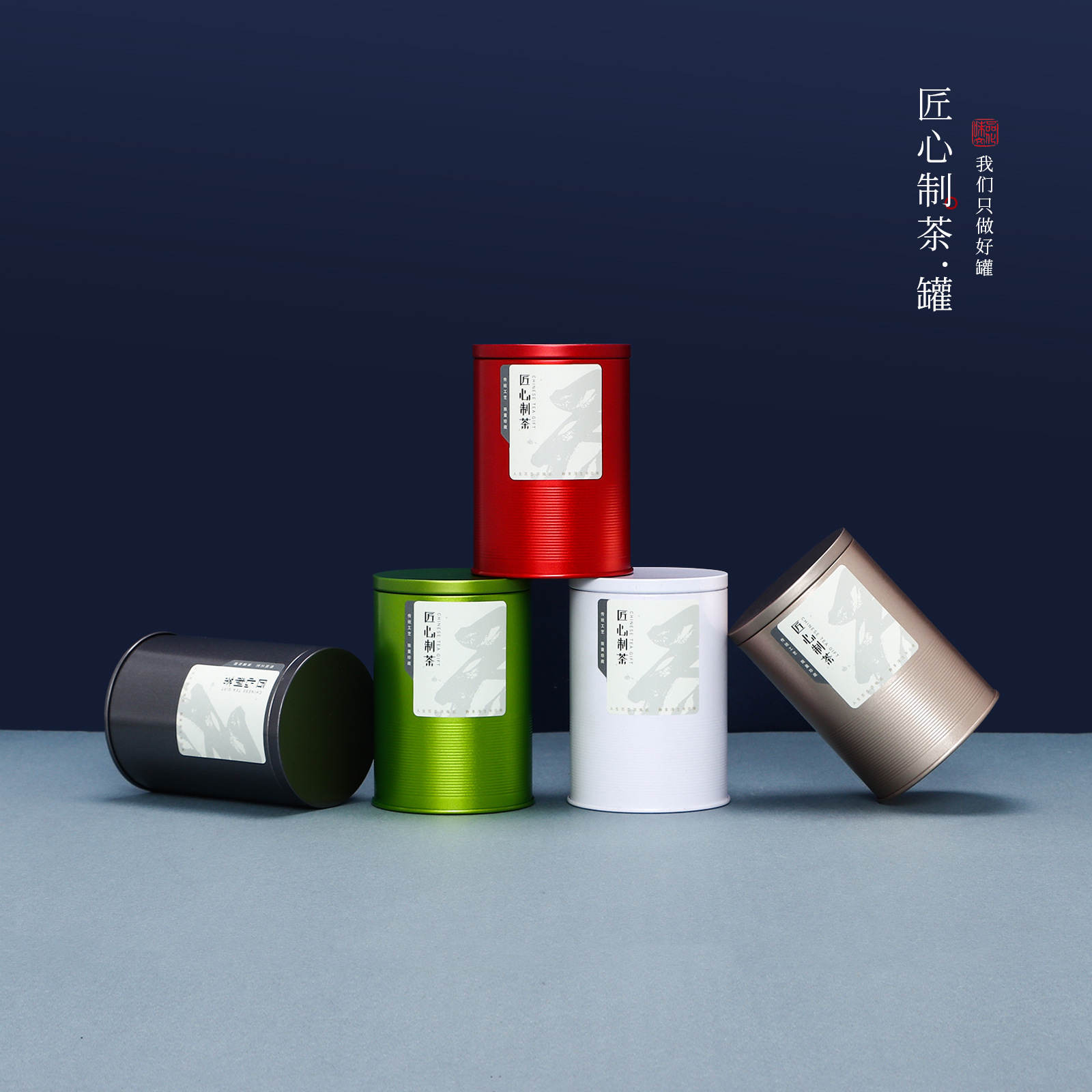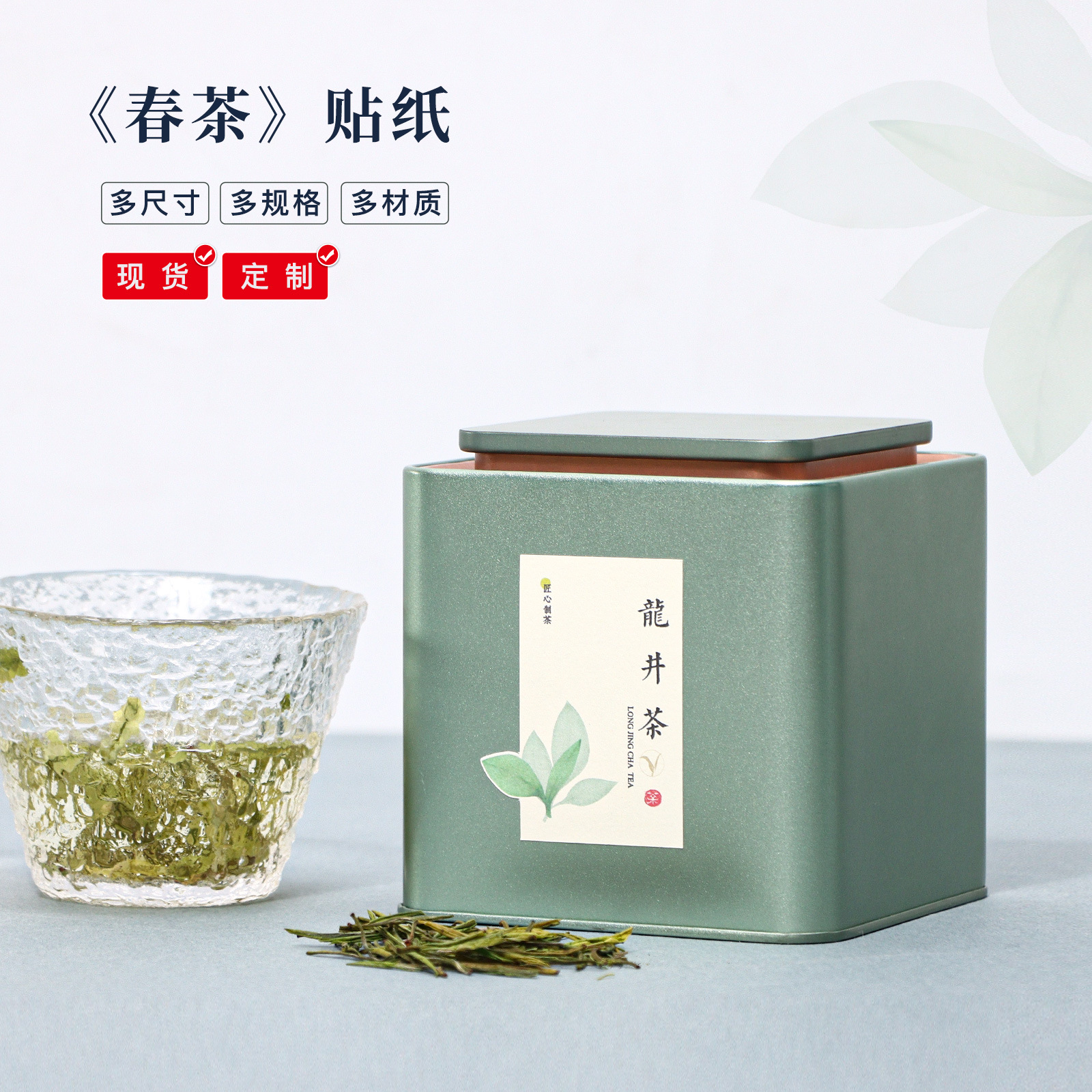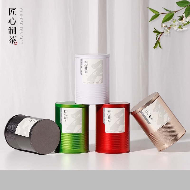 新品ブリキ茶葉缶緑茶シール鉄箱包装空箱円形金属茶葉箱セット