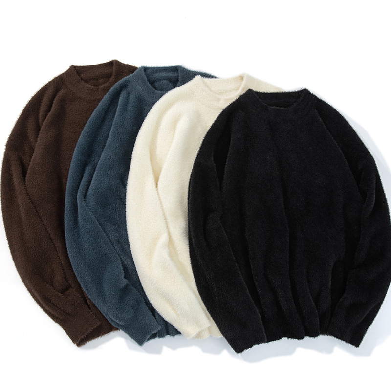 新ファッション純色シンプルでゆったりしたbf風男性プルオーバーセーター