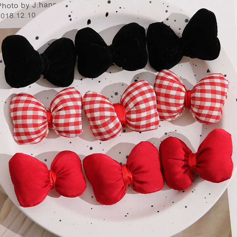 純色の充填が柔らかい綿の布芸の格子のストライプの蝶結びの髪飾りdiyアクセサリーの部品の卸売り