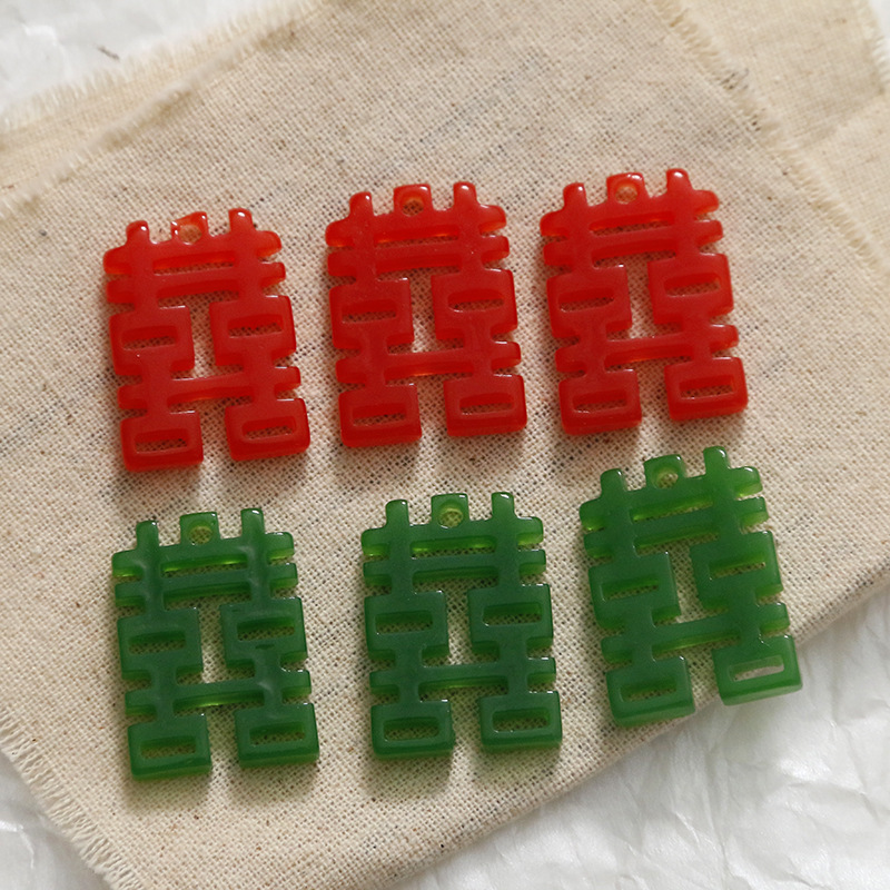 中国風のお祝いの赤い緑の双喜アクリルペンダントdiy小衆イヤリング女性携帯ケース材料卸売り