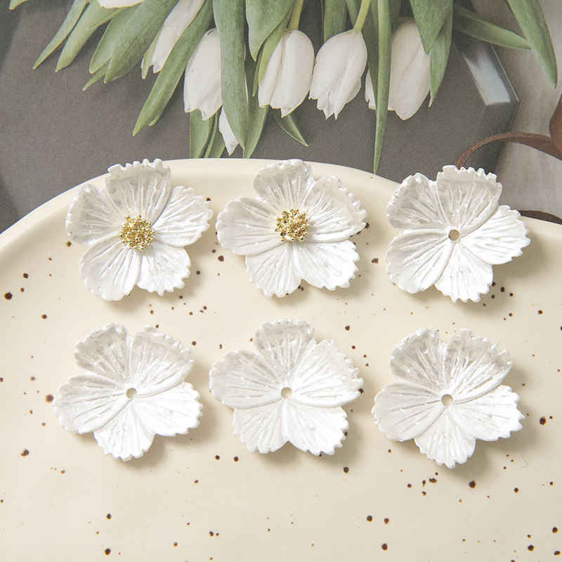 文芸風は貝の真珠の歯のような小さいサイズの銀の白い花のdiyの手をまねて耳飾りのヘアピンの携帯電話のケースの材料の卸売りを作ります。