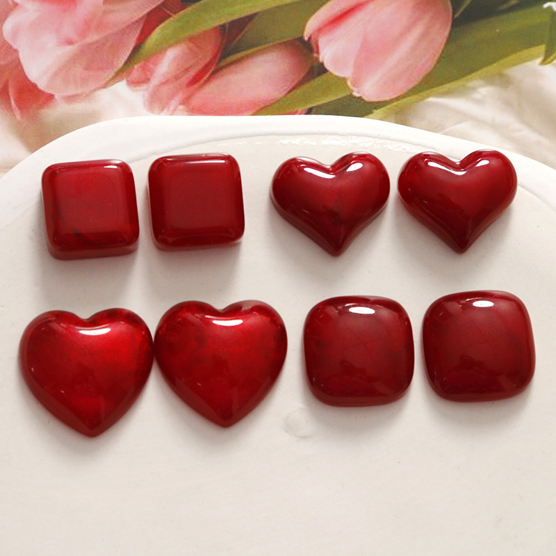 フランス式ロマンチックな風の幾何学の赤い愛の桃の心のdiy樹脂の部品の耳飾りのヘアピンの携帯のケースの材料の卸売り